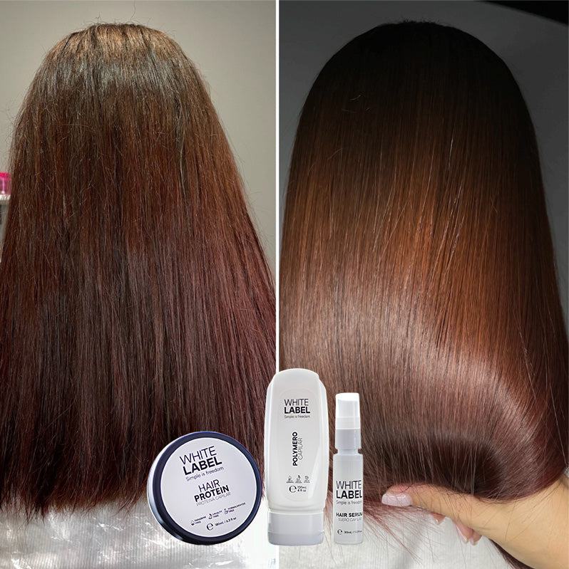 Solo la Proteína Capilar se enjuaga. El Serum y el Polímero son de aplicación sin enjuague.
